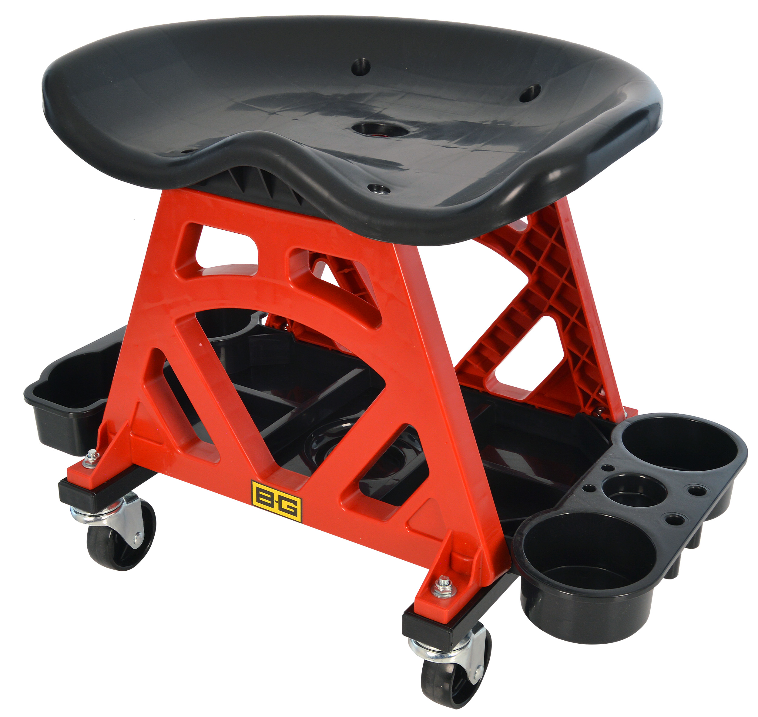 Produced from a durable plastic construction to provide strength and longevity, the B-G Ergonomic Mechanics Utility Work Seat is completed in a smooth black and red finish.